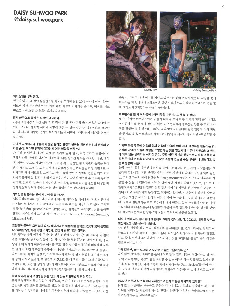 Personal projects include those created during the two years in MA Fashion, Royal College of Art, collaborative works with London and Seoul creatives, and various press editorials for Vogue, Dazed, Marie Claire, Billboard and more.